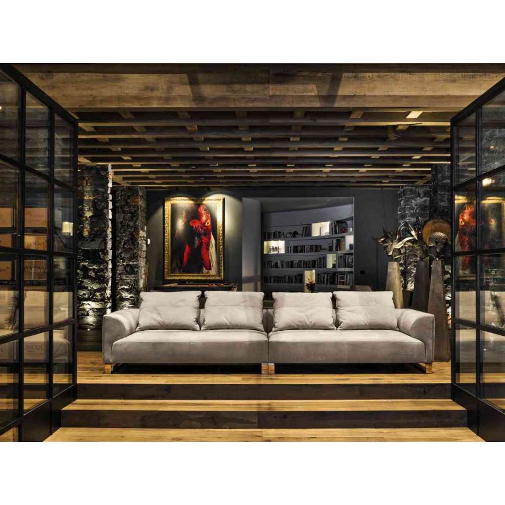 Modułowa sofa, która pozwala na wiele kompozycji mebli. Charakteryzuje się - tylko w wersji skórzanej - eleganckim wycięciem w strukturze, z metalową wstawką w wykończeniach: - jasne jasne złoto, - matowe szampańskie złoto, - jasny chrom, - jasny czarny chrom, - matowy satynowy brąz, - jasny róż złoty, - matowe różowe złoto. Metalowa stopa współgra z wykończeniem wkładu, istnieje możliwość dodania wkładu drewnianego tapicerowanego skórą lub tkaniną. Ogromną osobliwością sofy Fold jest siedzisko, wykonane z drewnianej podstawy z nieodkształcającymi się elastycznymi paskami, w połączeniu z materacem z pianki poliuretanowej o różnej gęstości. Sztywna warstwa podstawowa zapewnia stabilność i zapobiega zgnieceniu. W centralnej części siedziska znajduje się wkładka „Breeze”, rewolucyjna otwartokomórkowa pianka poliuretanowa o wysokiej odporności na starzenie i odkształcenia, która gwarantuje odprowadzanie wilgoci, zapewniając uczucie najwyższego komfortu i zapewniając maksymalny komfort. Wreszcie płyta Memory Foam, pokryta wykładziną tapicerską w połączonej żywicy, gwarantuje, że siedzisko powróci do swojego pierwotnego kształtu. Poduszki oparcia pokryte są sterylizowanym puchem gęsim. Pozostała część konstrukcji wykonana jest z drewna pokrytego pianką poliuretanową o dużej gęstości. W wersji w całości tapicerowanej tkaniną nie ma możliwości dodania metalowych wstawek. Istnieje jednak możliwość dopasowania zewnętrznej części konstrukcji w skórze (z metalową wstawką) do wewnętrznej części w tkaninie wybranej z próbek. Tapicerki skórzanej i materiałowej na ramie nie można zdjąć, z wyjątkiem poduszek na oparciu.