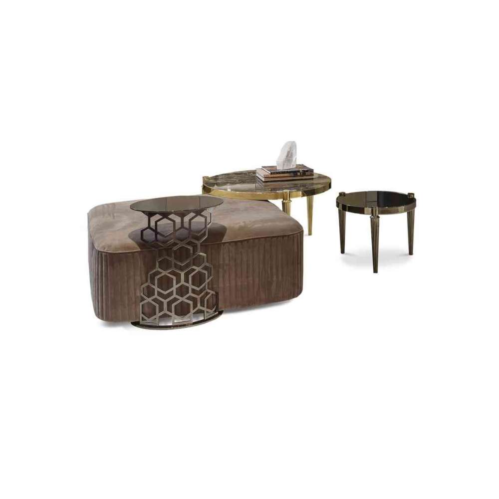 Okrągłe stoliki z metalu z rowkowanymi, zwężonymi nogami: