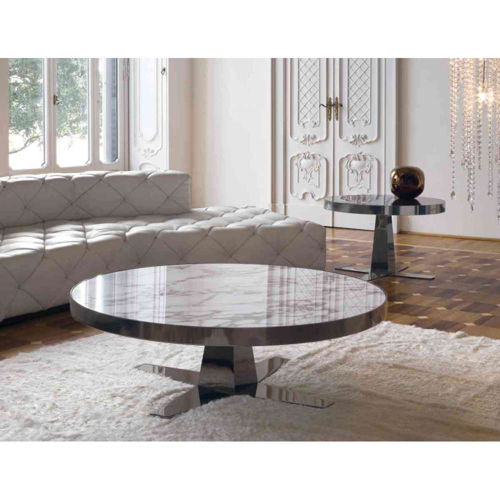 Małe stoliki z szlifowanego metalu wycinanego laserowo. Wykończenie oprawek: jasne jasne złoto, szampańskie matowe złoto, jasny chrom, jasny czarny chrom, matowy satynowy brąz. Górne wykończenie: elegancki brązowy marmur, marmur z łupanego palisandru, marmur Silver Wave, marmur Port Black, marmur Frappuccino, marmur Calacatta Gold, ciemny marmur Emperador, malowany czarny kryształ 6 mm, brąz lub przydymione lustro 6 mm, błyszczący heban, błyszczący orzech Canaletto, matowy heban, matowy orzech Canaletto, matowe wenge, błyszcząca lakierowana kość słoniowa.