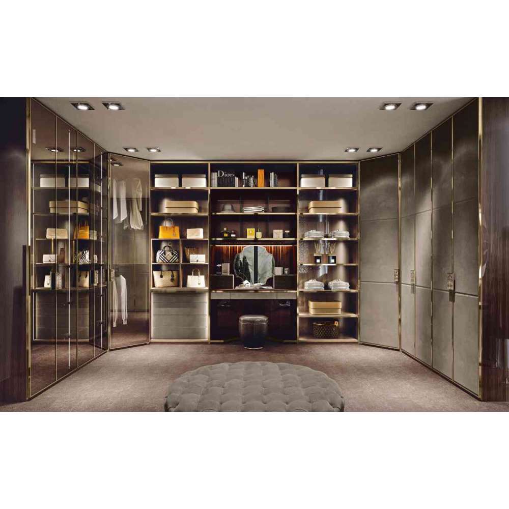 Boki posiadają oświetlenie LED na całej wysokości. Drzwi posiadają anodowane profile aluminiowe oraz odlewaną klamkę z wkładką z marmuru z asortymentu. Wewnętrzny panel tylny może być wykończony błyszczącym lakierem w kolorze kości słoniowej