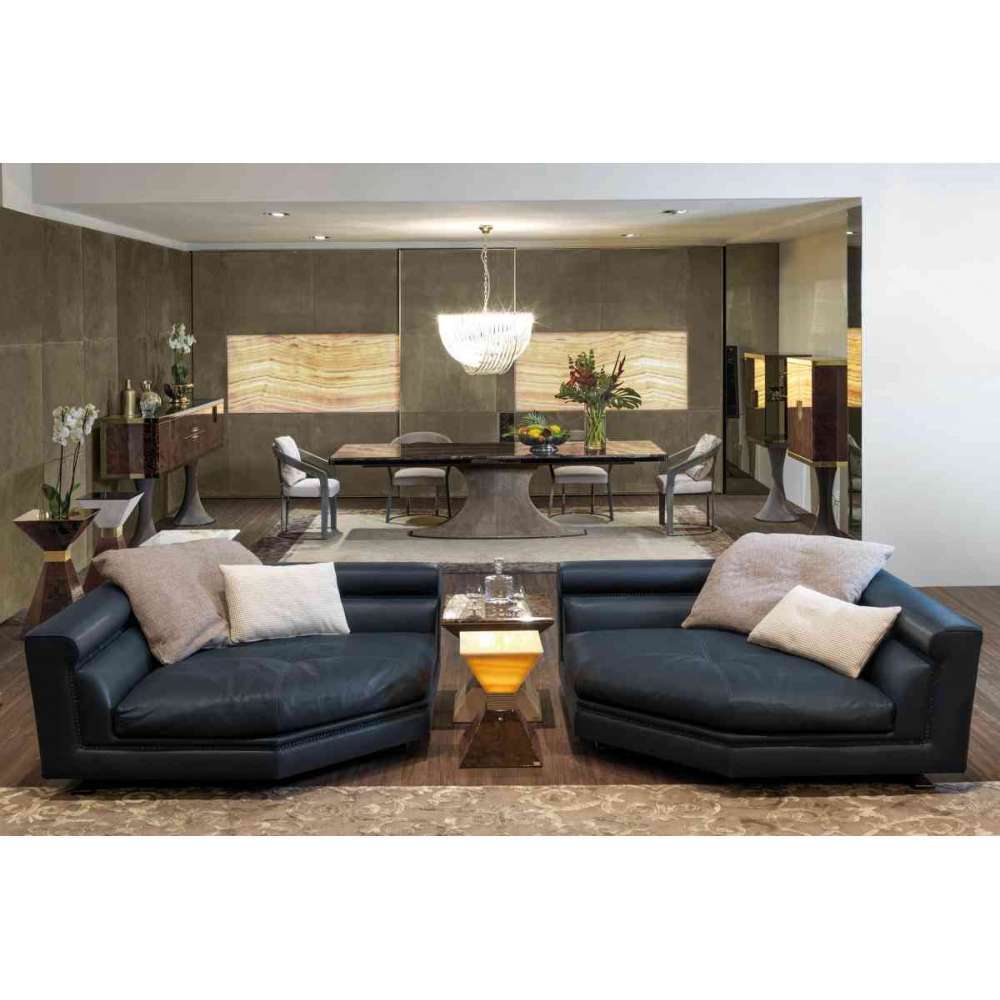 Kolekcja obszyta skórą lub tkaniną, wykończona widocznymi guzikami ustawianymi ręcznie i pojedynczo, w wykończeniach: jasny chrom, matowa czerń, jasne jasne złoto lub matowe postarzane złoto lub obszyta skórą i w miarę możliwości aksamitem. Uniwersalna modułowość pozwala na szereg różnych kompozycji: otwarte narożniki mogą być użyte w kompozycji narożnej lub jako szezlong wolnostojący, z możliwością posiadania półki użytkowej w kształcie pudełka z blachy onyks po stronie siedziska, z możliwością ściemniania światło wewnętrzne. Konstrukcja sofy wykonana jest z drewna z elastycznymi taśmami o wysokiej wytrzymałości, pokrytymi pianką poliuretanową o dużej gęstości. Poduszki siedziska pokryte są sterylizowanym gęsim puchem, z wkładkami z pianki poliuretanowej o różnej gęstości, z zaokrągloną powierzchnią z pianki Memory Foam, która zapewnia lepszą odporność na zgniatanie w miarę upływu czasu. Stopy są z profilowanego aluminium, malowanego na brąz. Ze względu na specjalny proces produkcyjny tapicerka konstrukcji nie jest zdejmowana, ale można zdjąć tapicerkę siedziska ze skóry lub tkaniny.