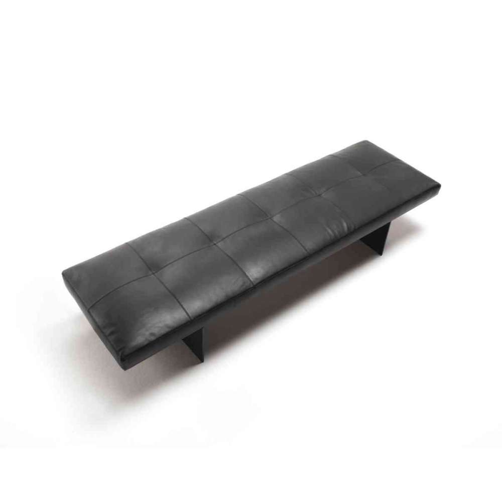 Ławka ze stalową ramą nośną i podstawą (wys. 33 cm i wys. 43 cm) z aluminium z epoksydową powłoką proszkową RAL-K7 9017 czarny mat i końcówki z czarnego PVC.