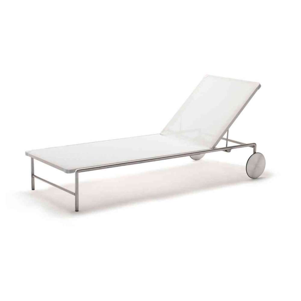 Leżak, dostępny z kółkami lub bez, z ramą nośną z rurki Ø25 mm ze stali nierdzewnej AISI 316 z matowym satynowym wykończeniem