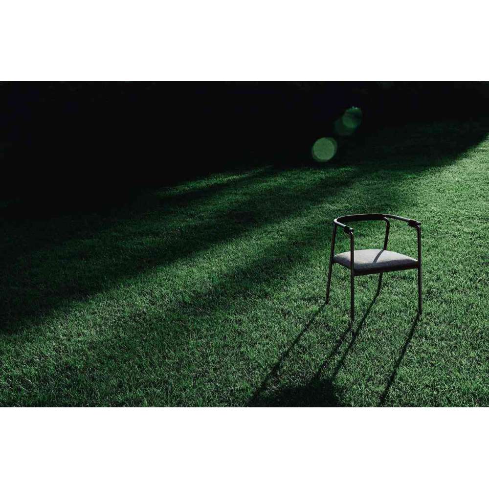 rama siedziska ze sklejki do użytku na zewnątrz z zawieszeniem sprężynowym z powlekanymi gumowymi elastycznymi paskami, wyściełana pianką poliuretanową o otwartych komórkach DRYFEEL S pokrytą włóknami do użytku na zewnątrz i pokrytą zgrzewaną wodoodporną tkaniną. Splot dekoracyjny na oparcie i podłokietniki z profilem ze skóry (Ø2,5mm), sznurka celulozowego (Ø4mm) lub liny woskowanej (Ø2mm) do użytku na zewnątrz, w kolorach z kolekcji. Nieusuwalna tapicerka siedzeń z tkaniny lub skóry
