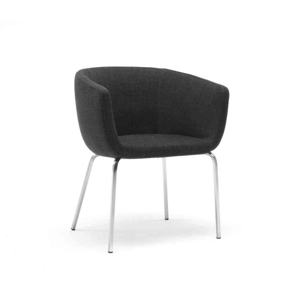 Fotel mały z jednoczęściową ramą ze stalową wstawką i wyściółką z elastycznej, zimnej pianki poliuretanowej.