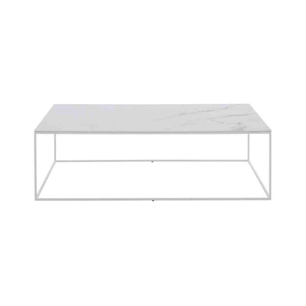 Ligne Roset Space | Low Rectangular Table Top In White Marble-Effect Ceramic Stoneware White Lacquered Base