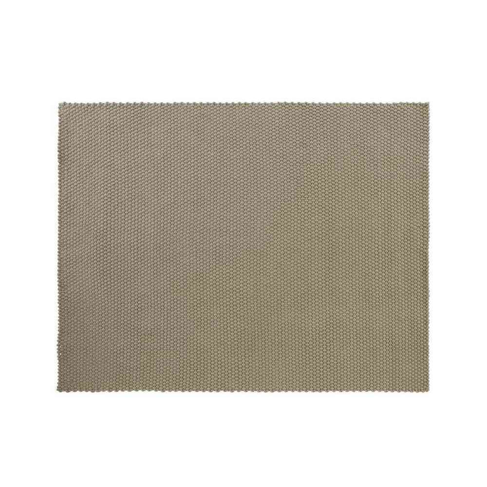 Dywan wewnętrzny/zewnętrzny nieprzepuszczający wilgoci dzięki materiałom, z których utkany jest sznurek: pet (politereftalan etylenu, który mimo podobieństwa nazwy w niczym nie przypomina polietylenu i nie zawiera ftalanu, pierwiastka, który od niedawna związane z toksycznością) i poliestru. zwierzę użyte do produkcji tego dywanu pochodzi z recyklingu (17 kg zwierzęcia to równowartość 370 plastikowych butelek pochodzących z recyklingu). jego kolory są inspirowane naturalnymi elementami zewnętrznymi. dywanik ze sznurka jest szczególnie odporny na zużycie