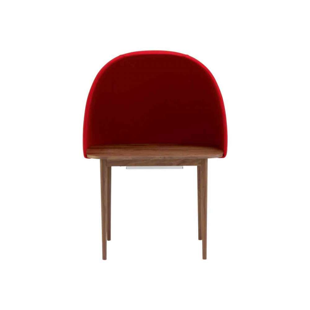 Biurko Rewrite to mały klejnot nowoczesności i miękkości. Dźwiękoszczelna bańka zapewnia ochronę zarówno przed światłem, jak i hałasem zewnętrznym, a także tłumi dźwięki dochodzące z jej wnętrza. Naturalne, szlachetne materiały, z których się składa, orzech i wełna Kvadrat Divina lub Steelcut Trio, wzmacniają ogólne poczucie miękkości i bezpieczeństwa. Funkcjonalną część zamyka lakierowana metalowa skrzynia, mocowana pod biurkiem, która ukrywa transformatory i kable elektryczne oraz szczelinowy otwór na kabel w górnej części biurka. Pozostając w kontakcie, użytkownik może odizolować się i stworzyć dla siebie bardzo prywatną przestrzeń, która jest jednak nadal połączona ze światem zewnętrznym... Dzięki zaokrąglonemu kształtowi biurko Rewrite można ustawić jako „punkt” w dowolnym miejscu w pokoju , czy to w salonie, sypialni czy nawet dużym przedpokoju. Biurko z nogami z litego orzecha i blatem z MDF fornirowanego orzechem, z wyjątkiem szczelinowego otworu na kabel w tylnej części, który jest wykonany z litego orzecha. Bańka/ekran z włókna szklanego pokrytego pianką polieterową i dostępny we wszystkich kolorach wełny Divina lub Steelcut Trio zarówno po wewnętrznej, jak i zewnętrznej stronie. Skrzynia ze stali lakierowanej na biało na transformatory i kable, umieszczona pod blatem.