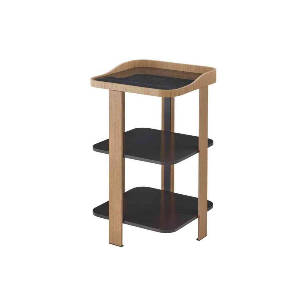 Ligne Roset Postmoderne | Bedside Table Base & Edging Natural Oak Top Gloss Black Marble-Effect Ceram. S'Ware