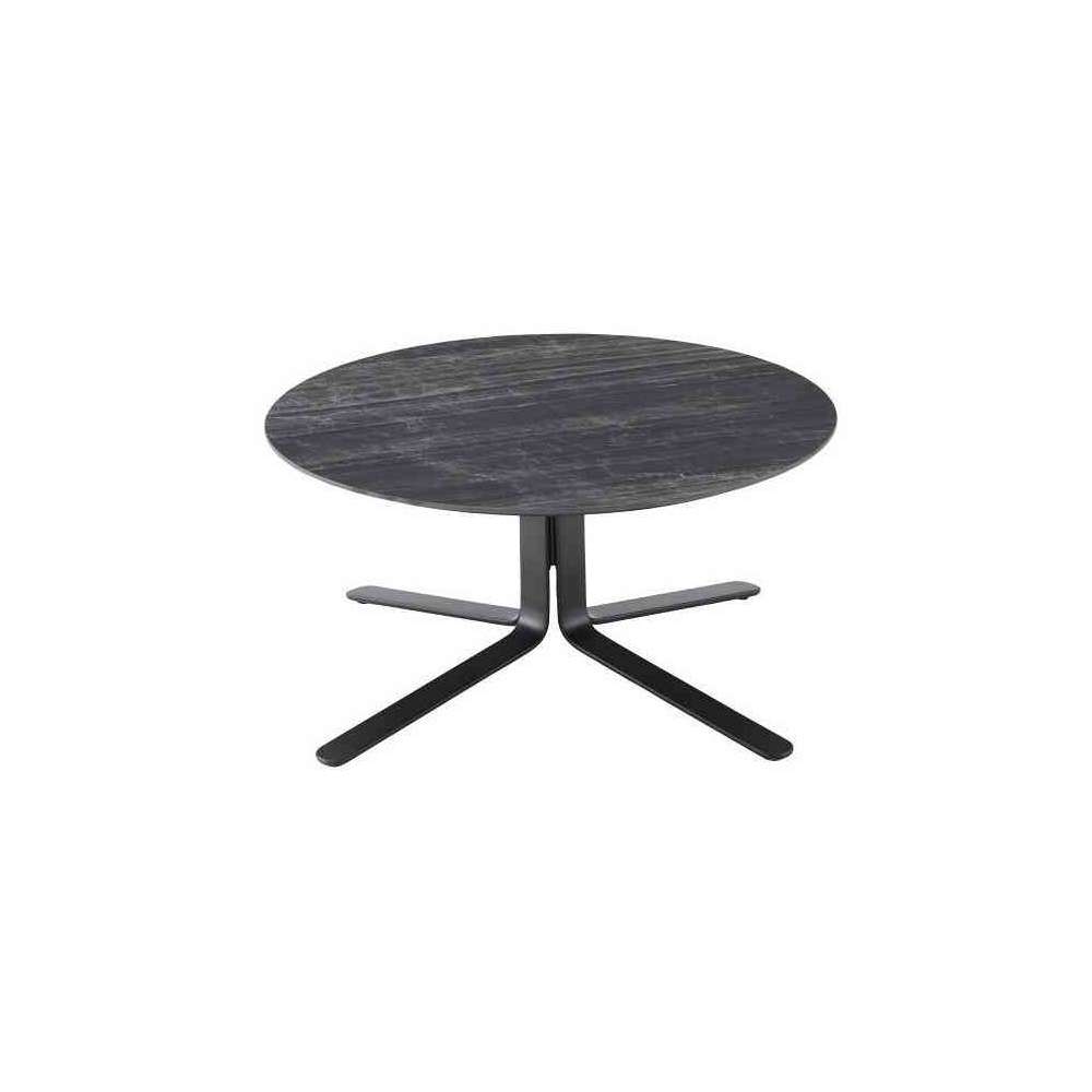 Ligne Roset Moa | Low Table Black Lacquered Base Gloss Black Marble-Effect Ceramic Stoneware Top