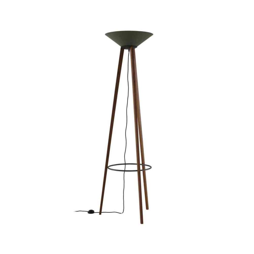 podłogowa lampa stojąca z podstawą z orzecha włoskiego i częściami metalowymi ze stali lakierowanej epoksydowo-satynowo-grisowo-antracytowej