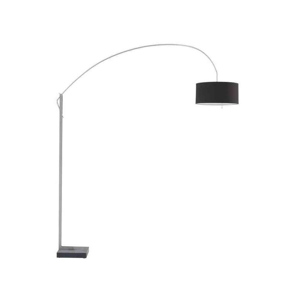 Standardowa lampa podłogowa z ramieniem sterowanym przeciwwagą. struktura z rur stalowych chromowanych na wysoki połysk z podstawą z szarego piaskowca pietra serena i białym perkalem lub zewnętrznym kloszem z czarnej bawełny z białym wnętrzem (nieprzezroczystym). dostarczana z 1 żarówką LED 27 - 12 W, ř 95, kolor 827 (ciepła biel). powyższe wymiary odnoszą się do ramienia w pozycji „otwartej”