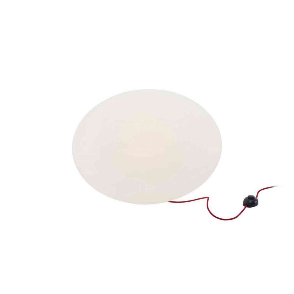 światło z teksturowanego białego polietylenu formowanego rotacyjnie (PE) z czerwonym tekstylnym kablem (2 m) i czarnym przełącznikiem nożnym. dostarczane z 1 x 24 kompaktową spiralną żarówką fluo we 27, kolor 827 (ciepła biel). ustawione np. wokół tarasu lub stołu na zewnątrz, stworzą przyjemną, ciepłą atmosferę.
