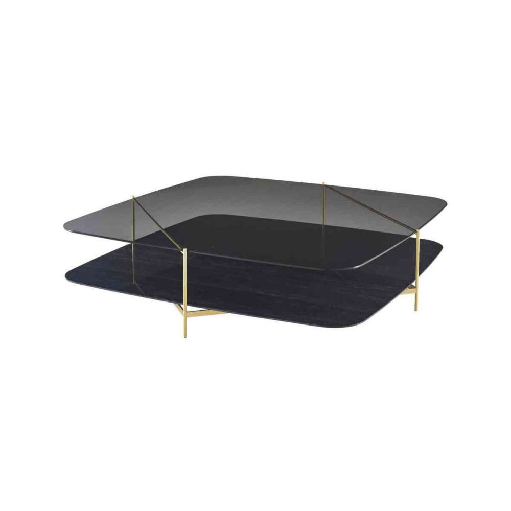 Zobacz większe Ligne Roset Clyde | Low Table - Brass-Effect Steel Structure Upper Top In Grey Smoked Glass Lower Top In Black Marble-Effect Cer