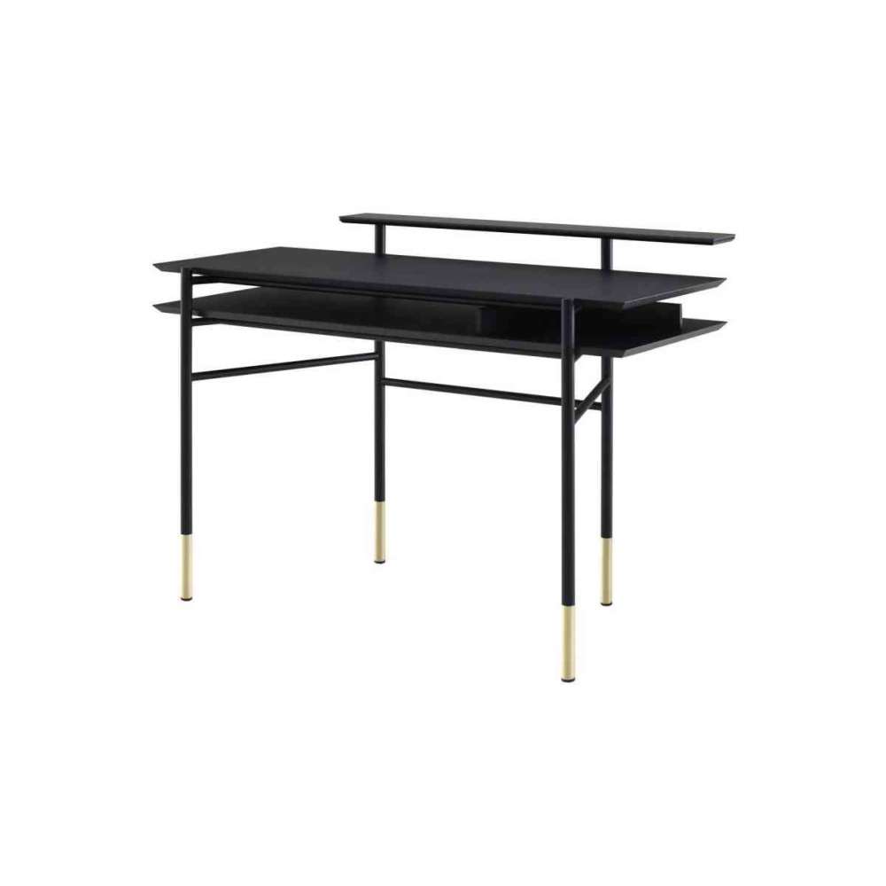 Ligne Roset Clyde | Desk Top In Black Stained Oak Brass-Effect Steel Base