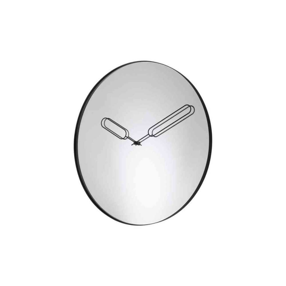 Zegar / lustro z satynową, czarną, lakierowaną stalową podstawą, lustrzanym szkłem i wskazówkami z czarnego lakierowanego aluminium. dostarczany z 1 baterią LR6.