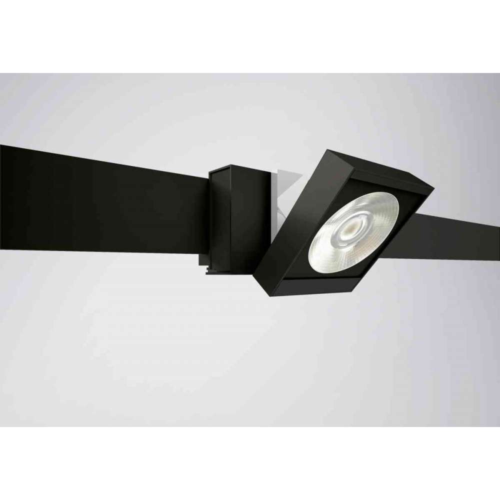Światło reflektora. Ramię z podwójnym przegubem, nachylenie 90° w płaszczyźnie poziomej i obrót o 360° wokół osi pionowej. Anodowana aluminiowa konstrukcja, ramię z chromowanego aluminium. Szkło ochronne, łatwa wymiana soczewek wtórnych. Zintegrowane urządzenie Shuttle [umożliwia podłączenie do wybranej linii zasilania toru]. Zintegrowany ściemnialny zasilacz 1 LED x 13W - 350 mA [1150 lm CRI 90 3000K / 1200 lm CRI 90 4000K] 1 LED x 20W - 500 mA [1900 lm CRI 90 3000K / 1600 lm VIVID 3000K 2000 lm CRI 90 4000K