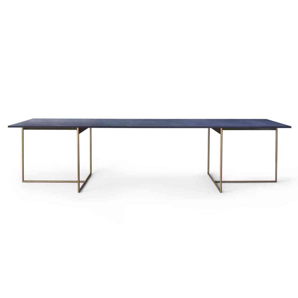 W istocie, badania projektanta koncentrowały się na temacie lekkości: elegancko kanciasta konstrukcja i blat stołu z podstawowymi liniami, tworząc ponadczasowy obiekt projektowy, któremu nadano dodatkowy urok dzięki połączeniu różnych materiałów. Konstrukcja jest wykonana z metalu pokrytego brązem, a blat przedstawia zupełnie nowy blat z efektem ziarna.