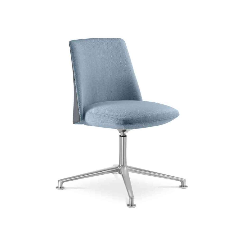 Krzesło konferencyjne obrotowe, oparcie o niewielkich rozmiarach, stała wysokość siedziska, podstawa z polerowanego aluminium 4-ramiennego, chromowane ślizgacze.