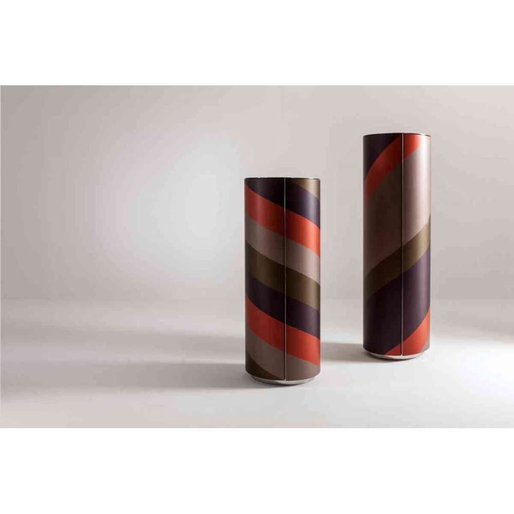 Zestaw cylindrycznych jednostek przypominających totemy, o średnicy 50 cm, wykonanych w trzech różnych wysokościach. Wielobarwny drewniany korpus i drzwi na zawiasach „Lacca 61”. Blat, uchwyt i cokół ze stali nierdzewnej, monochromatyczne wnętrze w kolorze „Lacca 61” lub satynowo-matowym lakierem. Wyposażony w 5 ultralekkich szklanych półek wewnętrznych oraz podstawę i blat z oświetleniem LED.