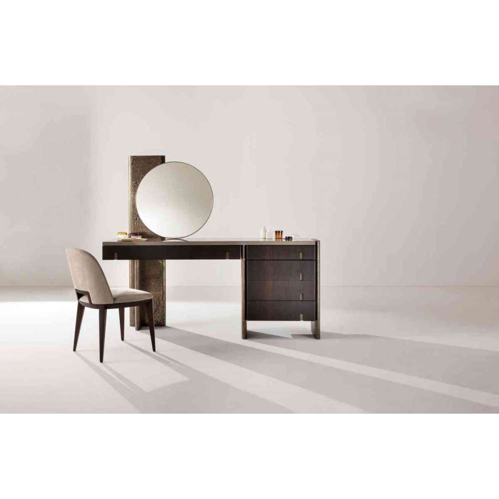 Zestaw toaletowy Moduł wyposażony w okrągłe lustro, dużą szufladę oraz komodę z 4 szufladami. Dostępne we wszystkich odcieniach drewna z kolekcji oraz w kolorze dębu barwionego aniliną lub lakierem matowym we wszystkich kolorach z palety RAL. Dostępny również ze specjalnym wykończeniem w patynowanym złocie.