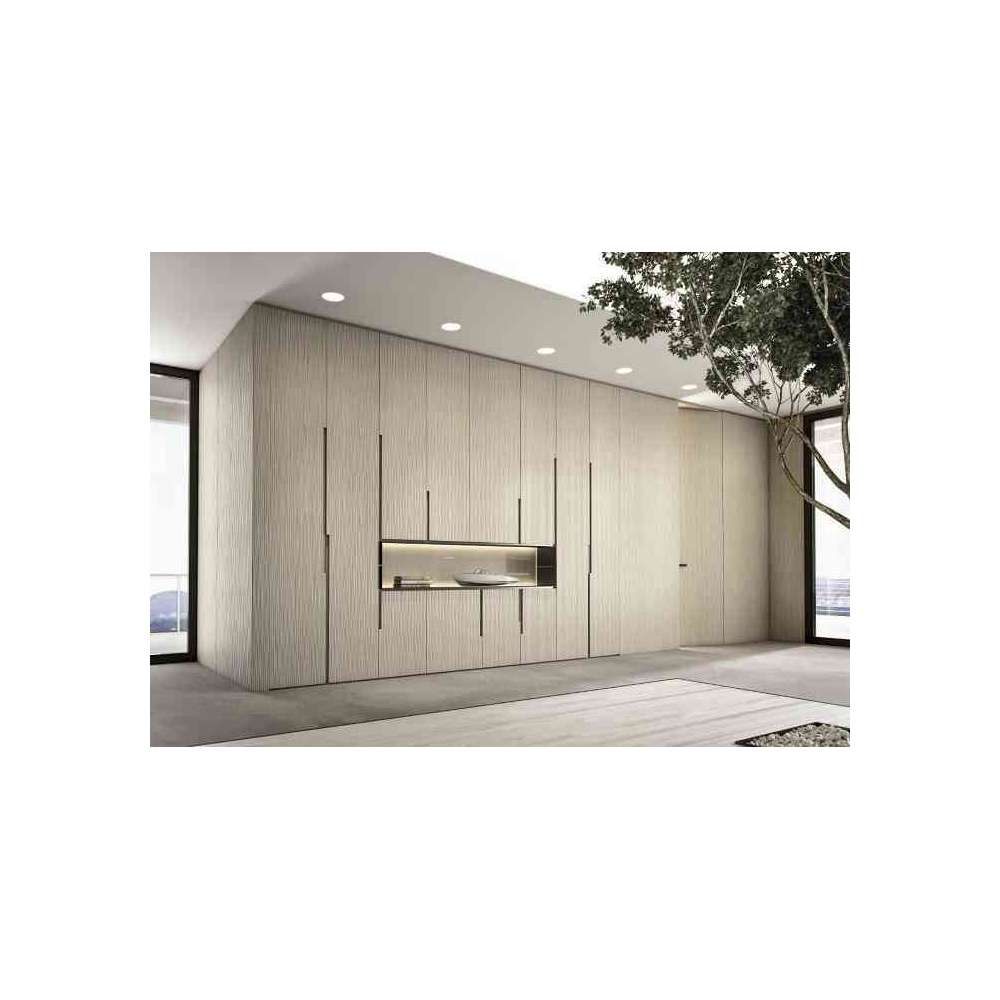 Drewniany system szafek z rzeźbą Onda dostępny w modułach o różnych rozmiarach, we wszystkich wykończeniach drewna z kolekcji oraz w kolorze dębu bejcowanego aniliną we wszystkich kolorach RAL. System dostępny jest ze zintegrowanymi drzwiami i panelami ściennymi, usłojeniem poziomym i pionowym, otwartymi przegrodami, ukrytym oświetleniem LED, szufladami i półkami.