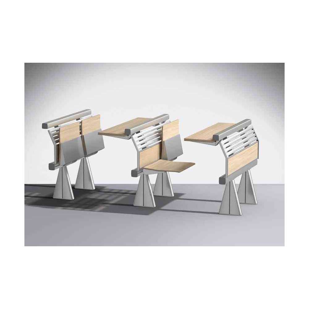 Konstrukcje nośne z ekstrudowanego, anodyzowanego aluminium, z przetłoczeniami i kanałami do mocowania elementów uzupełniających (słupki, siedziska, tablice do pisania, podpory), bez konieczności wiercenia lub jakiejkolwiek z góry określonej modułowości, aby zagwarantować maksymalną swobodę komponowania konstrukcji, nawet podczas instalacji. Montaż w prostych lub zakrzywionych rzędach, na stopniach lub na pochyłych podłogach (odległość między siedzeniami można regulować).