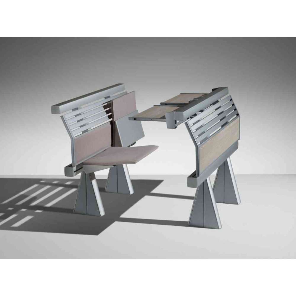 Konstrukcje nośne z ekstrudowanego, anodyzowanego aluminium, z przetłoczeniami i kanałami do mocowania elementów uzupełniających (słupki, siedziska, tablice do pisania, podpory), bez konieczności wiercenia lub jakiejkolwiek z góry określonej modułowości, aby zagwarantować maksymalną swobodę komponowania konstrukcji, nawet podczas instalacji. Montaż w prostych lub zakrzywionych rzędach, na stopniach lub na pochyłych podłogach (odległość między siedzeniami można regulować).