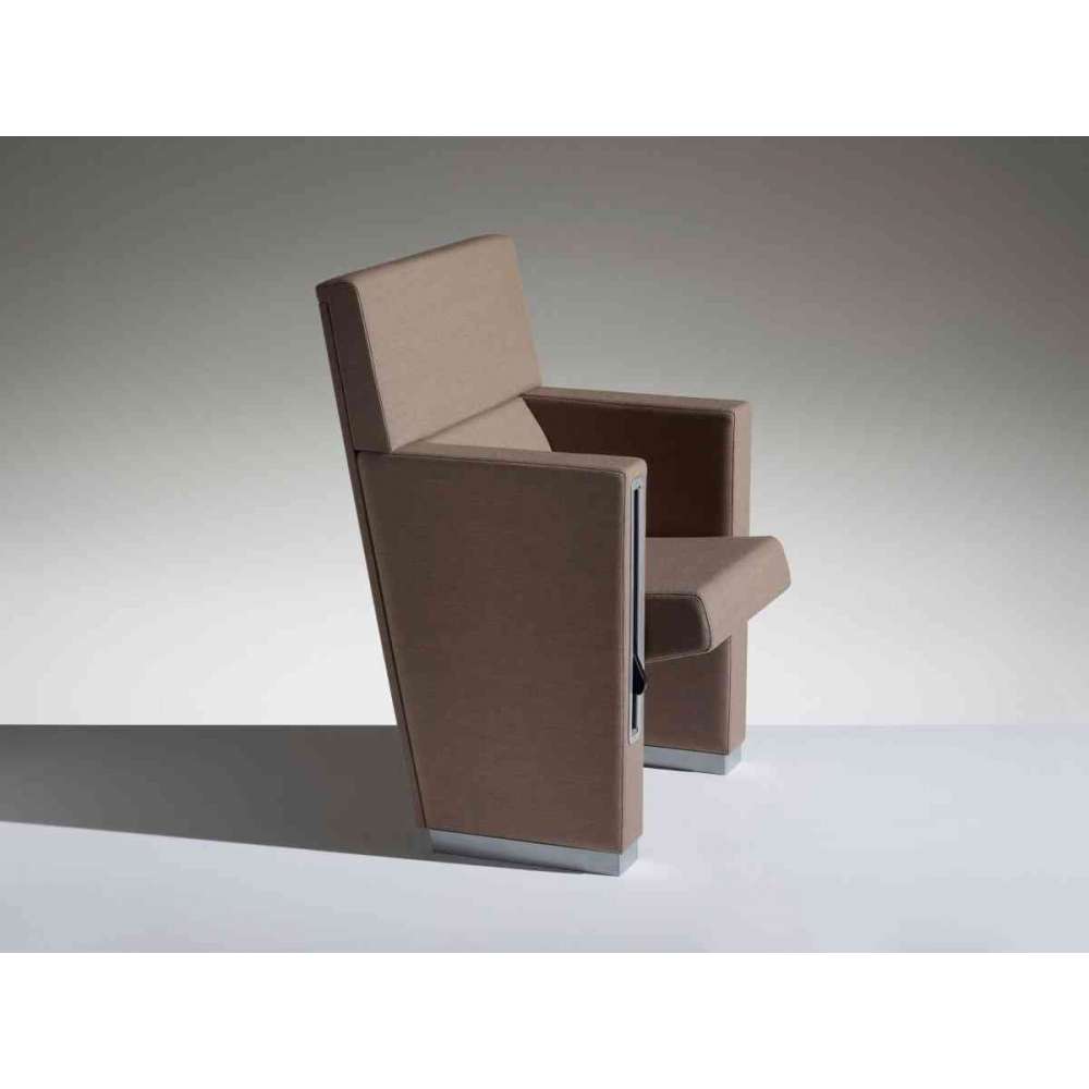 Siedzisko i oparcie składane grawitacyjnie z wewnętrzną konstrukcją ze sklejki i wyściółką z nieodkształcalnej, ognioodpornej, kształtowej pianki poliuretanowej. Widoczna sklejka lub wyściełane i zadaszone oparcie tylne. Mocowanie do podłogi za pomocą stopy kotwiącej w lakierowanym metalowym kołnierzu.