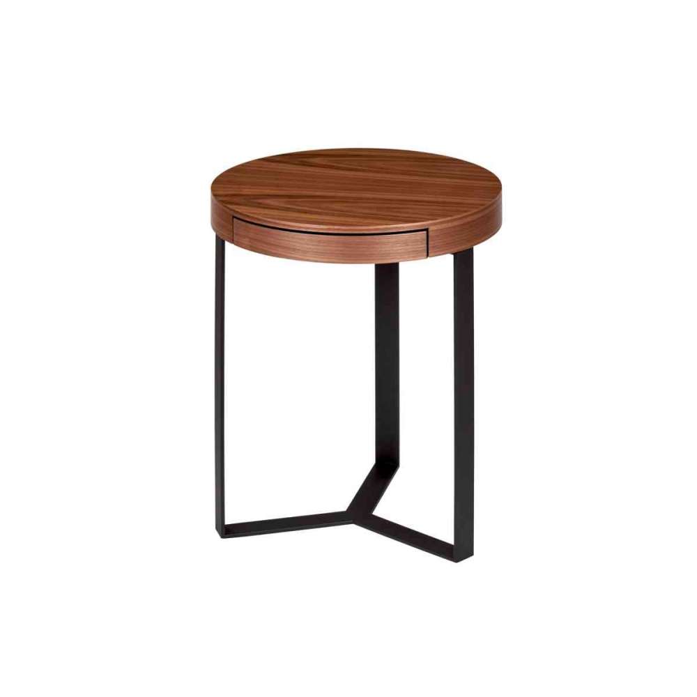 Stolik boczny Harry z szufladą, fornir orzechowy częściowo lity, podstawa metalowa malowana proszkowo na czarno