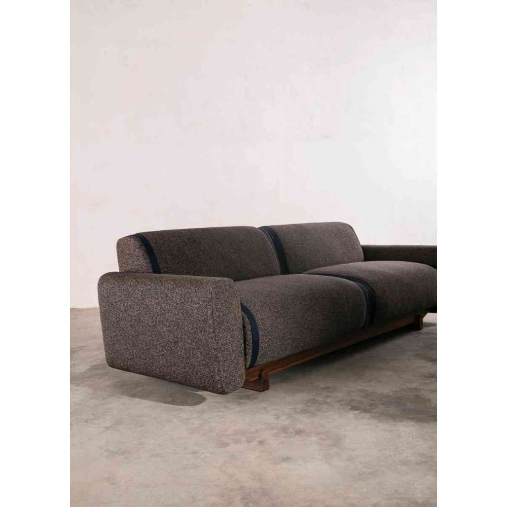 Zaprojektowany przez Sebastiana Herknera. Masywna drewniana podstawa sofy Pola to ukłon w stronę pasji Sebastiana Herknera do rzemiosła i zapomnianych technik przodków. Projektant miał na myśli tradycyjną architekturę stolarki i detale stolarskie. Odwrócona rama Poli nie znajduje się nad głową, ale raczej pod nią, a gładka drewniana konstrukcja belek nadaje bogatym poduszkom wrażenie unoszenia się w powietrzu. Eleganckie tekstylne paski i wyrafinowana struktura nadają tej dopasowanej sofie nowoczesne podejście. Obszerna i solidna konstrukcja.