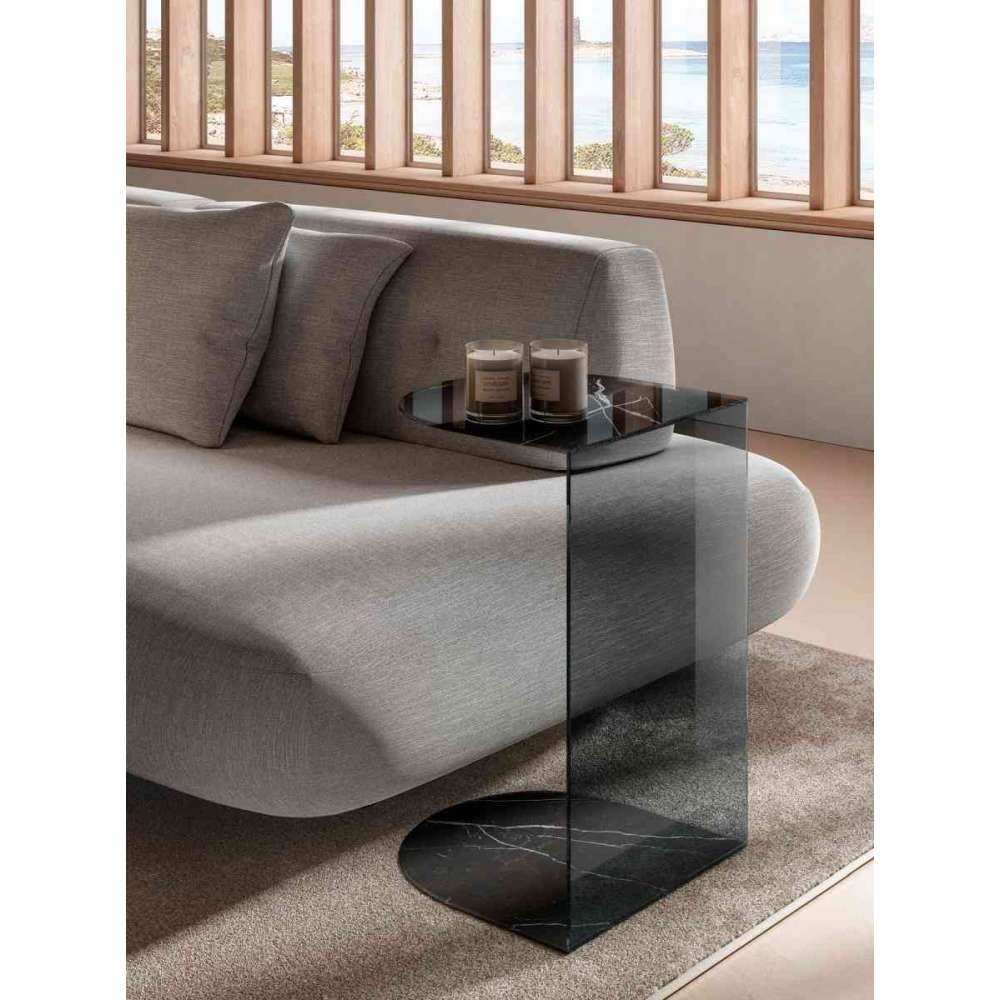 Oryginalny stolik kawowy o pionowej konstrukcji, zrównoważony podstawą zapewniającą stabilność. Zaprojektowany, aby towarzyszyć tym wyjątkowym chwilom spędzonym razem. Możesz naprawdę spersonalizować ten zgrabny mebel ze szklanym wykończeniem pod kątem 45°, idealny obok innych okazjonalnych stolików lub jako część kompozycji sofy, aby uzyskać praktyczny, a jednocześnie satysfakcjonujący wygląd.