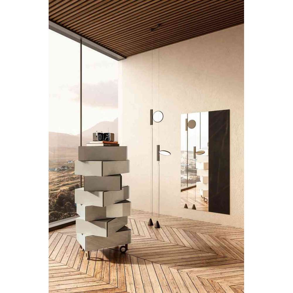 Ideą leżącą u podstaw Morgany jest ruch. Pojemne szuflady ustawione jedna nad drugą z pełną swobodą ruchów. Wszystkie rozwiązania zapewniają nieograniczone możliwości w zakresie kombinacji kolorystycznych i akcesoriów. Komoda Morgana jest poręczna i elegancka i idealnie pasuje do Twojego salonu lub sypialni. Opiera się na unikalnej konstrukcji konstrukcyjnej z wewnętrznym przegubem, który umożliwia obracanie i przesuwanie każdej szuflady na boki w czterech kierunkach.
