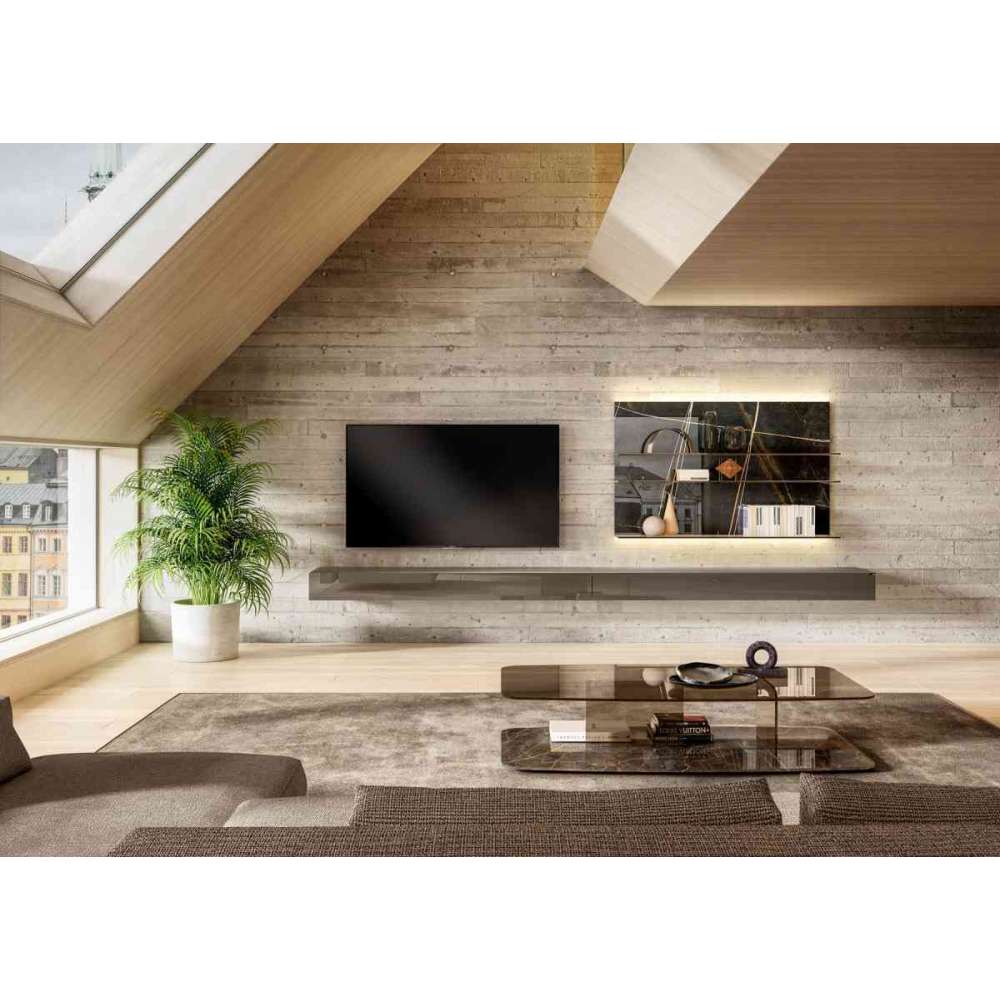 Jasna, współczesna ściana do salonu z wyrafinowanymi detalami. Eleganckie regały z grafiką pomogą Ci wyeksponować cenne przedmioty dzięki innowacyjnemu wykonaniu, które wykorzystuje nieodłączne właściwości szkła. Pływające wzory, wyrafinowane przezroczyste efekty, teksturowane wykończenia i wbudowane oświetlenie zostały połączone razem, aby zaoferować różnorodne kreatywne sposoby umeblowania Twojego salonu.