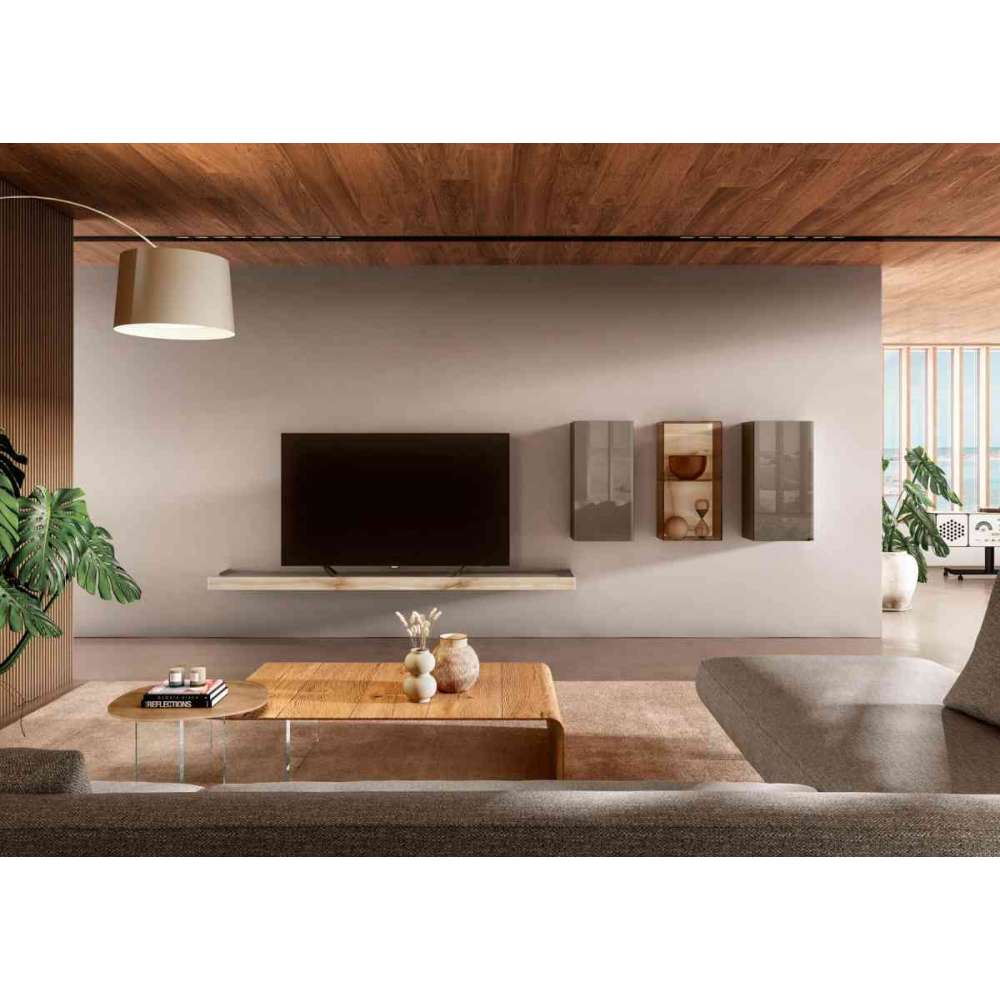 Jasna, współczesna ściana do salonu z wyrafinowanymi detalami. Eleganckie regały z grafiką pomogą Ci wyeksponować cenne przedmioty dzięki innowacyjnemu wykonaniu, które wykorzystuje nieodłączne właściwości szkła. Pływające wzory, wyrafinowane przezroczyste efekty, teksturowane wykończenia i wbudowane oświetlenie zostały połączone razem, aby zaoferować różnorodne kreatywne sposoby umeblowania Twojego salonu.