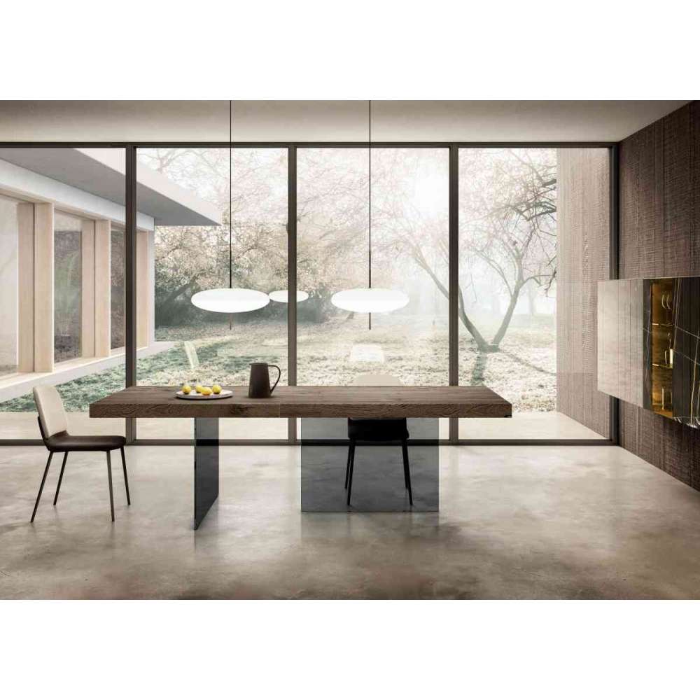 Zobacz większe Lago Air Wildwood Table - Wildwood grigio top. Grey smoked glass legs.