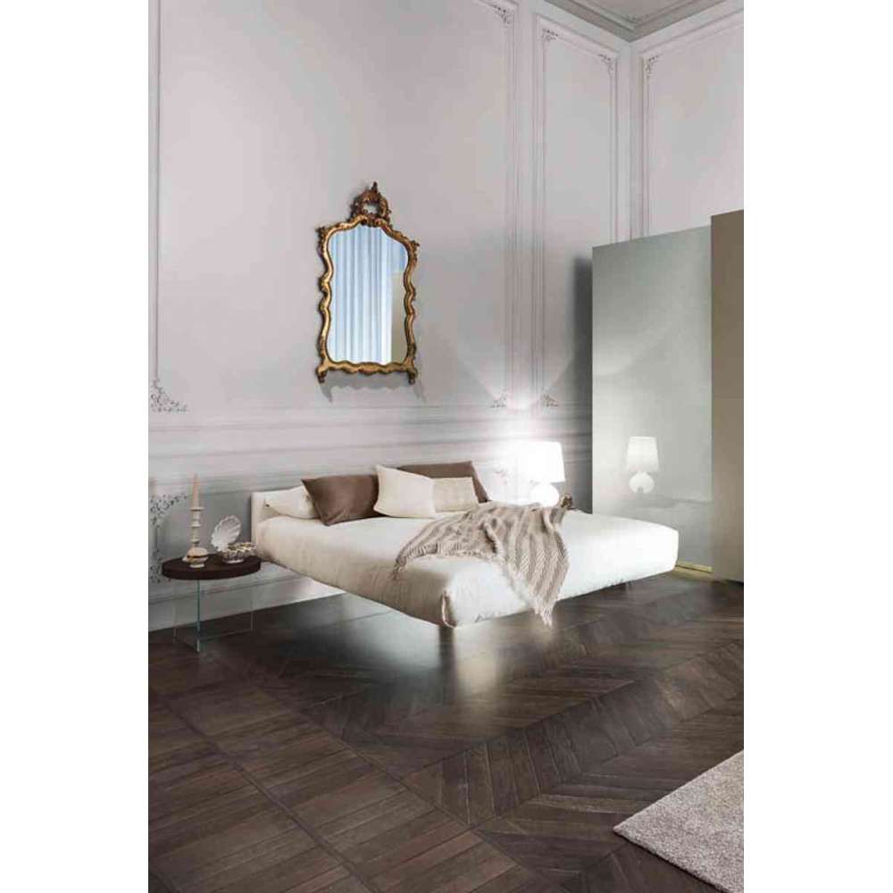 Przechowalnia zawieszona na mocnym hartowanym szkle zdaje się unosić w powietrzu, tworząc wrażenie niezwykłej lekkości. Dzięki precyzyjnie obrobionemu profilowi 45° i aluminiowej okładzinie te czyste bryły można dostosować do każdego kontekstu i nie wymagają mocowania do ściany.