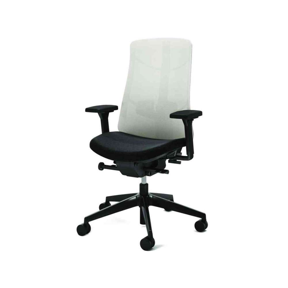 Zainspirowany naturą fotel obrotowy JET.III łączy organiczny design oparcia z przekonującą stabilnością. Forma emanuje dynamiczną lekkością i dodaje szyku. Misterne połączenia w konstrukcji grzbietu przypominają żebrowaną strukturę liścia. Zapewnia to dobrą stabilność i gwarantuje, że krzesło wytrzyma obciążenie do 150 kg, oparcie jest wyprofilowane zgodnie z kręgosłupem. Regulatory regulacji wysokości oparcia i zagłówka są harmonijnie, prawie niewidocznie, zintegrowane z konstrukcją oparcia. Zaktualizowany mechanizm synchronizacji z dwupozycyjną funkcją nachylenia siedziska i oparcia do przodu oraz szybką regulacją ciężaru. Funkcje ustawiania ciężaru, wysokości siedziska, nachylenia siedziska/oparcia i blokowania oparcia można intuicyjnie regulować za pomocą zaledwie dwóch przycisków. JET.III można w pełni dostosować do indywidualnych potrzeb ergonomicznych. Siedzisko, zagłówek, oparcie, podłokietniki i podparcie odcinka lędźwiowego można łatwo dostosować do różnych potrzeb. Podpórkę pod szyję i wieszak na ubrania można w każdej chwili doposażyć. Dwa różne stopnie twardości pianki zapewniają wysoki komfort siedzenia.
