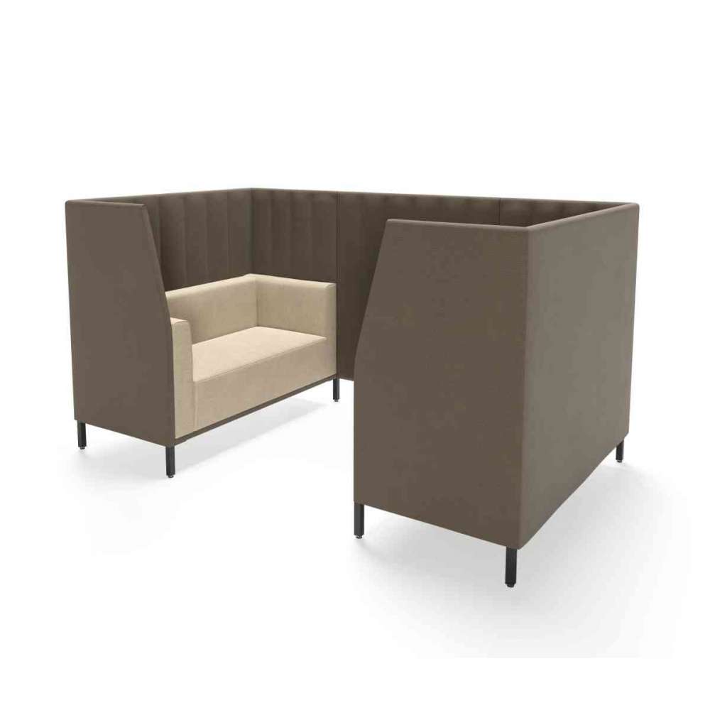 Kompozycja dwóch sof 2-osobowych z panelem połączeniowym, przydatna do zagwarantowania prywatności w środowiskach pracy i poczekalniach. Wersje jedno lub dwukolorowe, ze stolikiem bocznym lub bez, z białymi, czarnymi lub chromowanymi nóżkami. Podwójne gniazdo USB do ładowania urządzeń mobilnych dostępne na zamówienie.