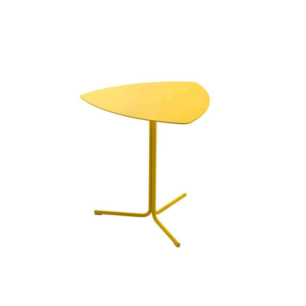 Asortyment stołów trójkątnych z zaokrąglonymi krawędziami.