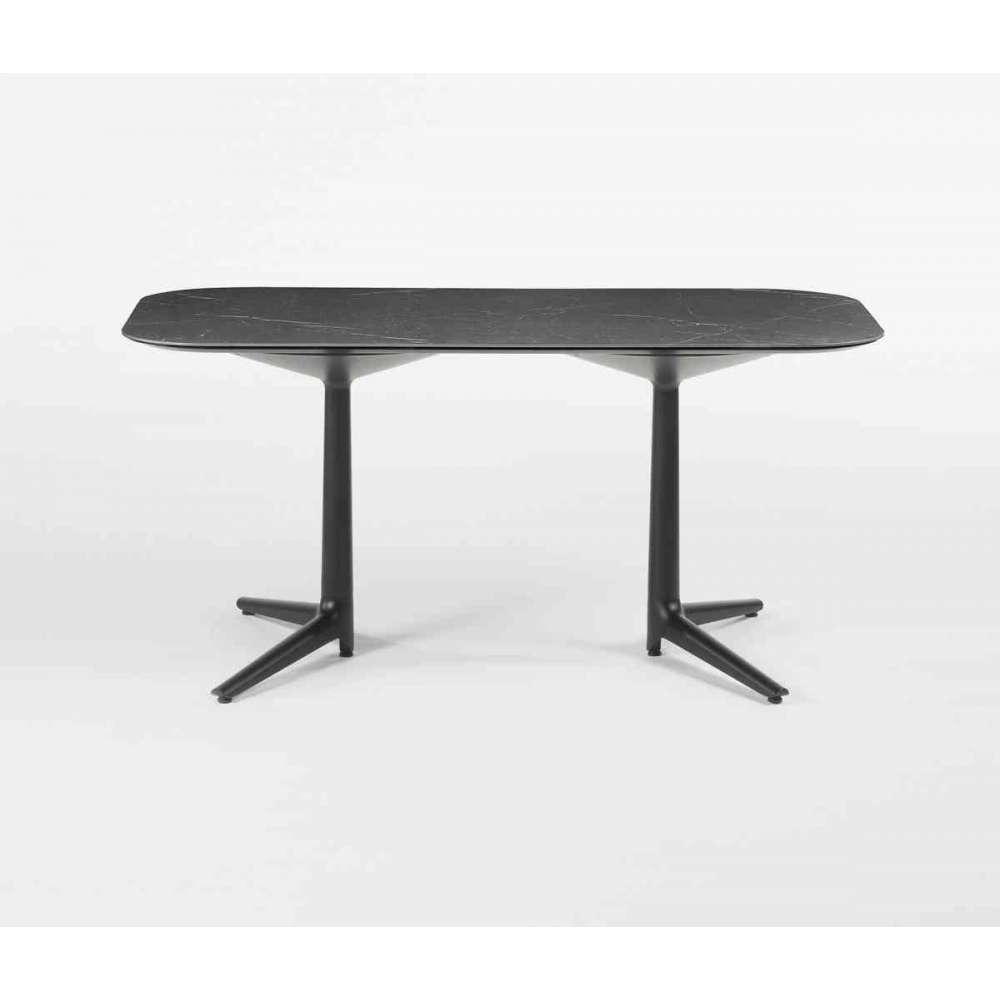Multiplo to duża rodzina stołów o wszechstronnym zastosowaniu, zaprojektowana tak, aby umożliwić dostosowanie do indywidualnych potrzeb poprzez zabawę kształtem (zaokrąglony kwadrat, okrągły i owalny) oraz łączenie w pary podstaw (podstawa kolumny centralnej, podstawy dwu, trzy lub czteroramienne) i blatów (z gładkiej kamionki , marmurowe lub szklane wykończenia). Najnowsze produkty zaprezentowane na Salone del Mobile 2017 to niski stolik Multiplo o wysokości 73 cm i stolik kawowy Multiplo, dwa warianty, które wzbogacają i uzupełniają linię, oferując możliwość ustawienia stołów obok sof w części dziennej. Stoły do jadalni (lub biura) są również dostępne w nowych wymiarach 230 cm dla zaokrąglonego prostokątnego blatu i 135/160 cm średnicy dla okrągłego modelu.