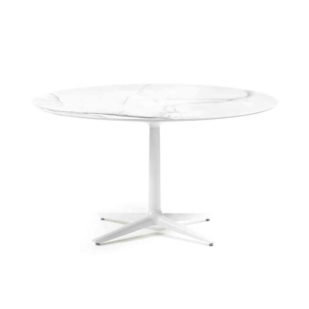 Multiplo to duża rodzina stołów o wszechstronnym zastosowaniu, zaprojektowana tak, aby umożliwić dostosowanie do indywidualnych potrzeb poprzez zabawę kształtem (zaokrąglony kwadrat, okrągły i owalny) oraz łączenie w pary podstaw (podstawa kolumny centralnej, podstawy dwu, trzy lub czteroramienne) i blatów (z gładkiej kamionki , marmurowe lub szklane wykończenia). Najnowsze produkty zaprezentowane na Salone del Mobile 2017 to niski stolik Multiplo o wysokości 73 cm i stolik kawowy Multiplo, dwa warianty, które wzbogacają i uzupełniają linię, oferując możliwość ustawienia stołów obok sof w części dziennej. Stoły do jadalni (lub biura) są również dostępne w nowych wymiarach 230 cm dla zaokrąglonego prostokątnego blatu i 135/160 cm średnicy dla okrągłego modelu.