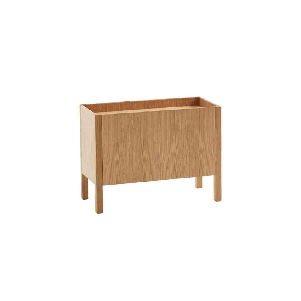 Ideą stojącą za szafką Upper (2019) jest to, że blat działa jak własna obramowana powierzchnia. Wyjątkowe detale cholewki obejmują ścięte narożniki i delikatnie zaokrąglone listwy krawędziowe z litego drewna ze stojącymi słojami. Atrakcyjnie wykończony tylny panel sprawia, że szafka idealnie nadaje się jako przegroda pomieszczenia. Drzwi, które wystają ponad samą szafkę, mogą służyć jako uchwyty. Cholewka jest dostępna w dwóch szerokościach i wysokościach. Szafka wykonana z płyty MDF fornirowanej, wykończona w kolorze dąb, jesion, kolory standardowe, wybarwienia standardowe na jesion lub dąb lub jesion szkliwiony na biało. Opcjonalne dodatki: blokowane koła i panele górne z białego szkła, korka, stali nierdzewnej, dębu, jesionu, standardowe kolory lub standardowe bejce. Rama nóg posiada regulowane nóżki. Szafka jest dostarczana zmontowana. Szafkę można wykorzystać jako przegrodę pokoju, za sofą lub ustawić pod ścianą.