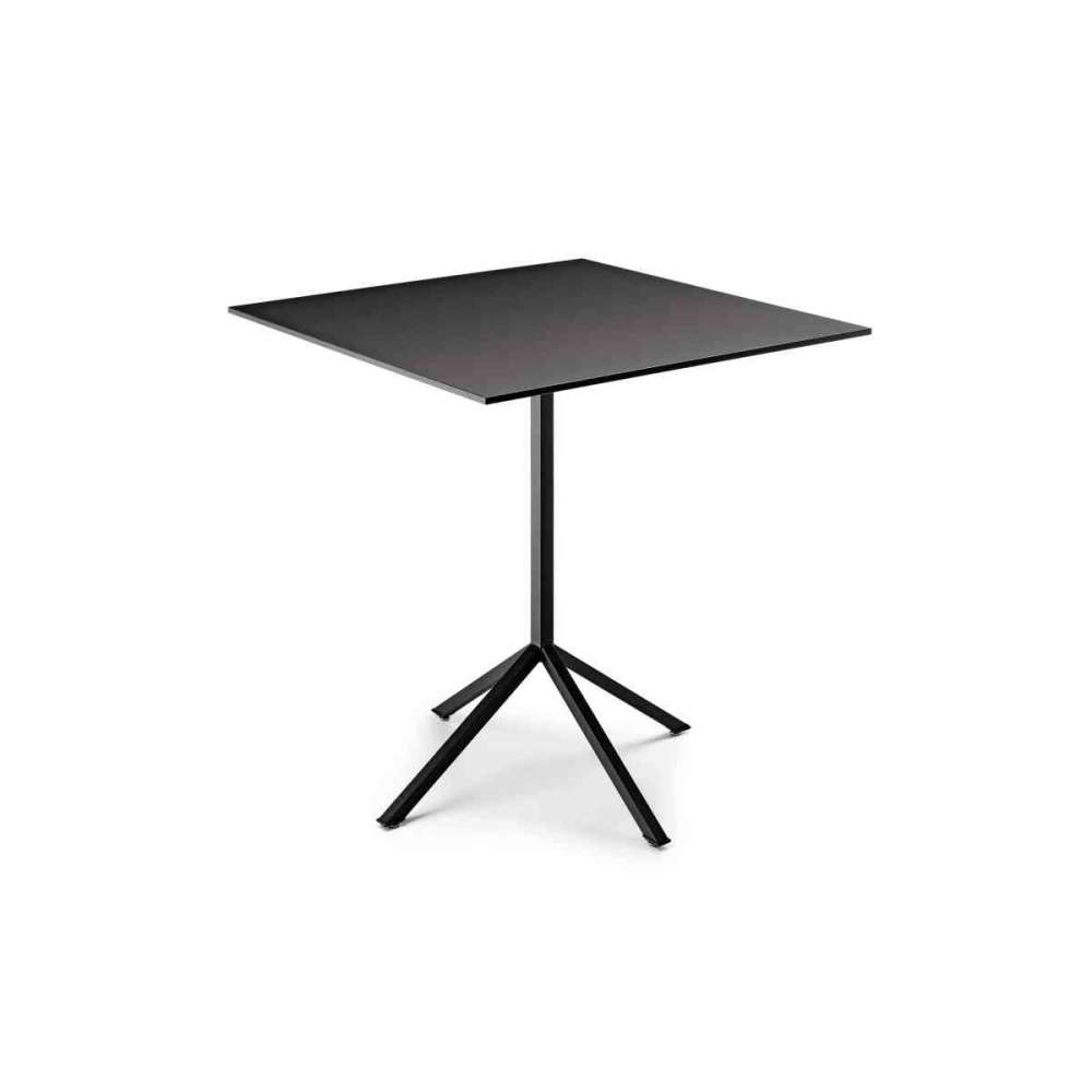 Stół z ciągnioną stalową ramą i czteroramienną podstawą, malowany na biało lub czarno. Okrągły lub kwadratowy blat, dostępny z polipropylenu, laminatu, MDF lub Fenix.