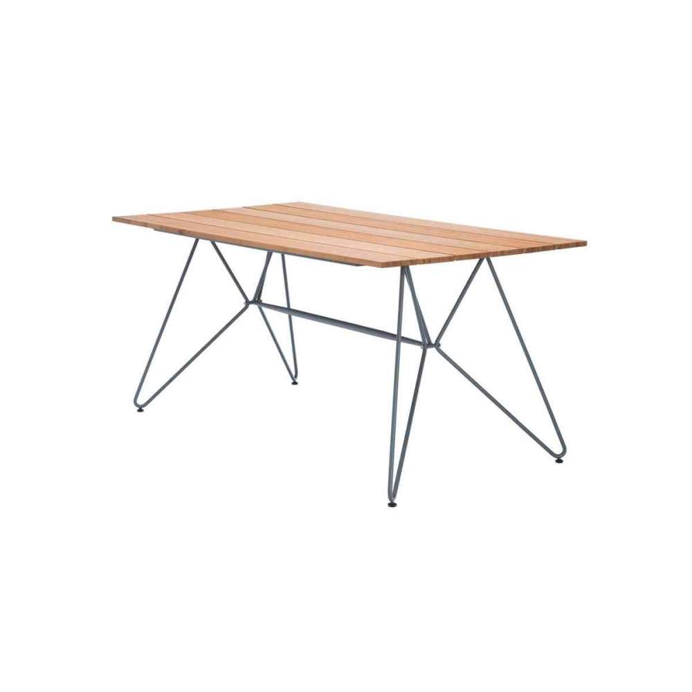 Stół ogrodowy SKETCH z bambusowymi lamelami. Piękne rzeźbione metalowe nogi nadają stolikowi SKETCH minimalistyczny wygląd. Konstrukcja nóg sprawia, że stół jest całkowicie stabilny. Bambusowy blat jest wstępnie olejowany.