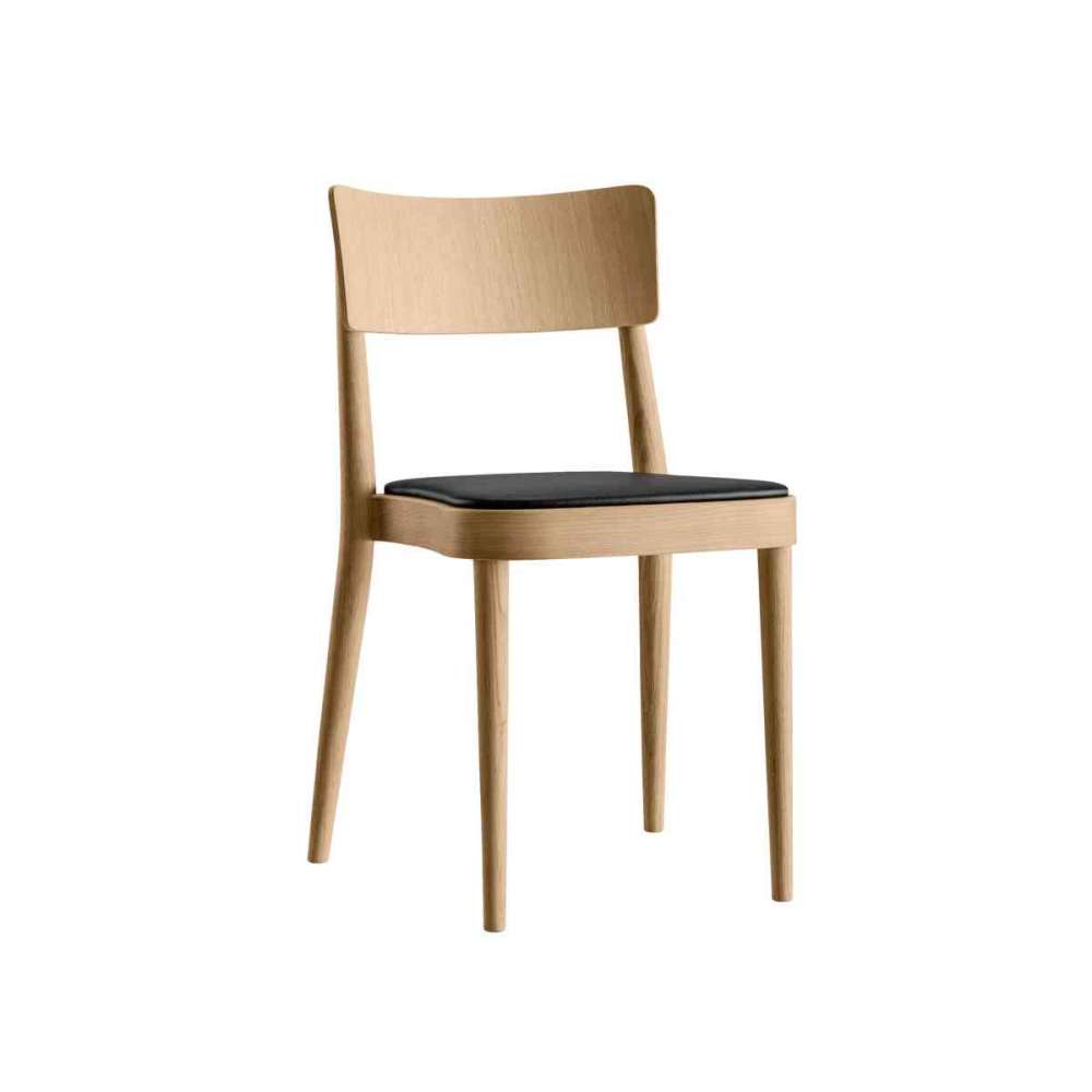 Tapicerowane siedzisko, oparcie, tylne nogi i rama siedziska z litego drewna giętego, możliwość sztaplowania