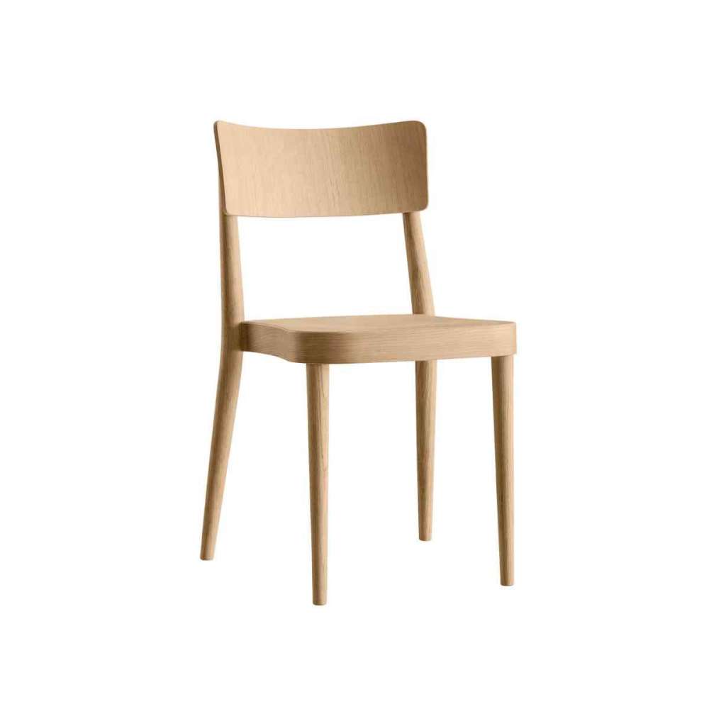 Siedzisko i oparcie z formowanej sklejki, tylne nogi i rama siedziska z litego bentwoo, możliwość układania w stos