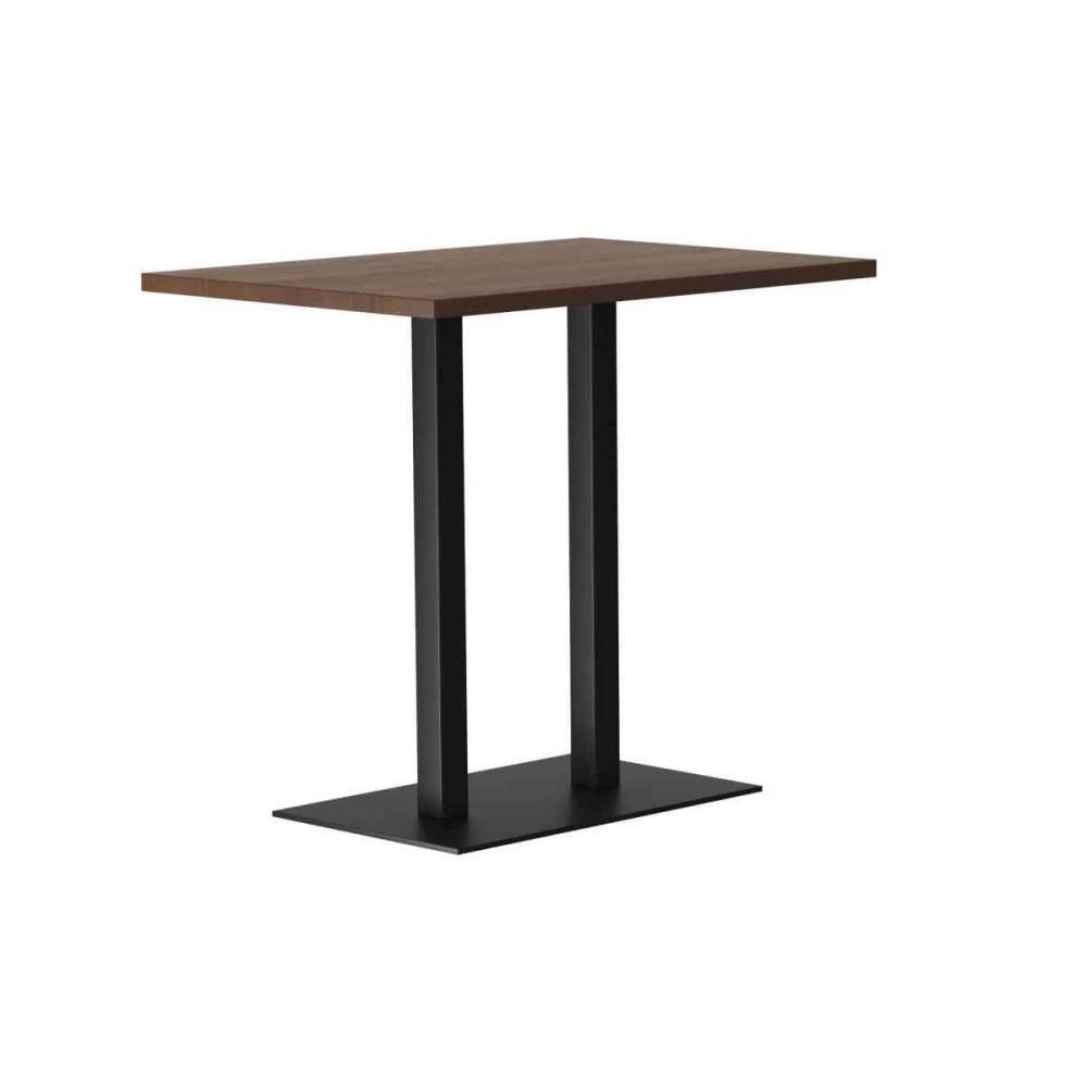 Stół z dwoma 4 kwadratowymi filarami i prostokątną płytą podstawy, malowany proszkowo, blat z litego drewna z listwami na jaskółczy ogon, obrzeże typu A lub blat fornirowany, pokryty panelami z żywicy syntetycznej lub linoleum, obrzeże typu Ü, gr. 30mm
