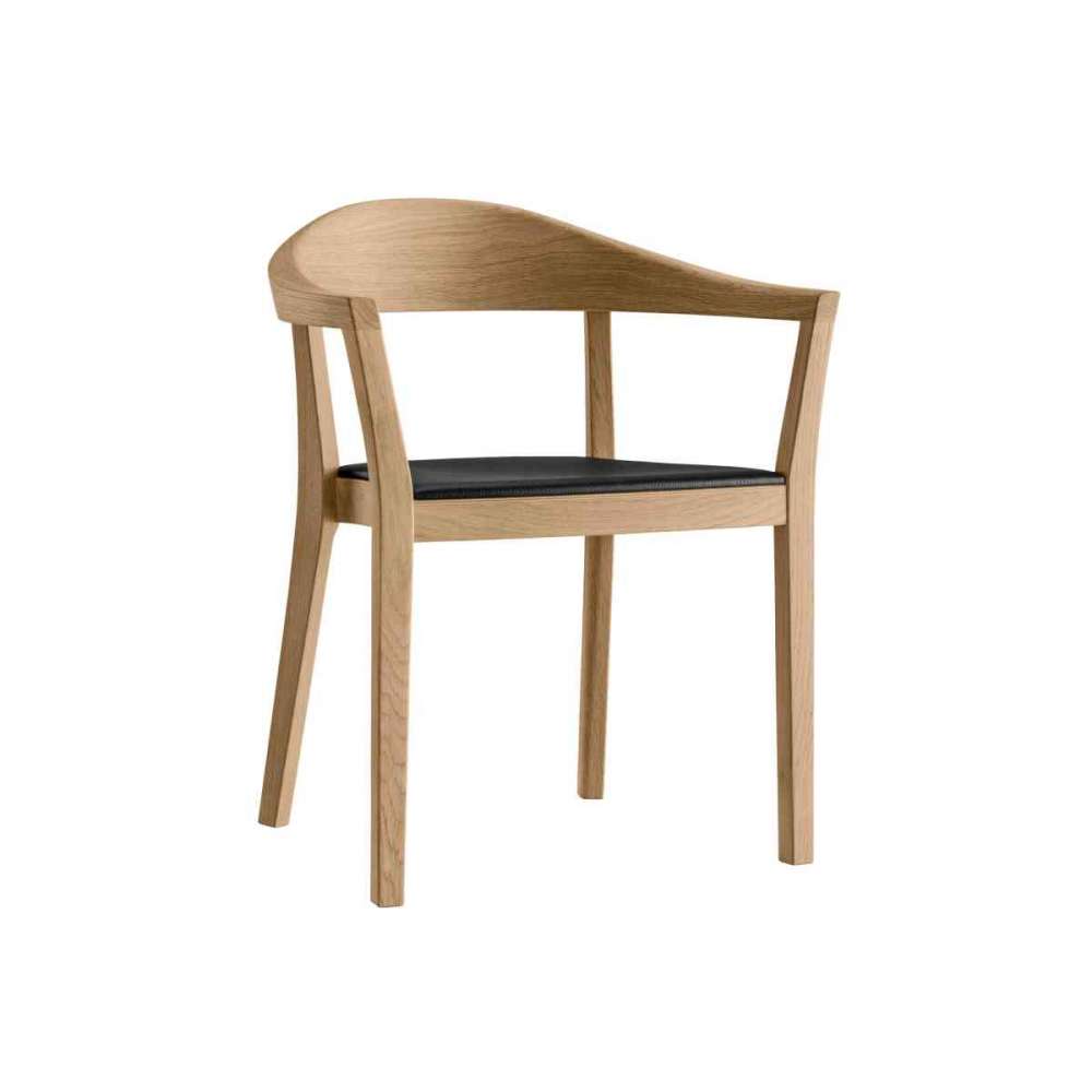 Tapicerowane siedzisko 3D, oparcie/podłokietniki i nogi z litego drewna giętego, możliwość sztaplowania, opcjonalnie łącznik rzędów
