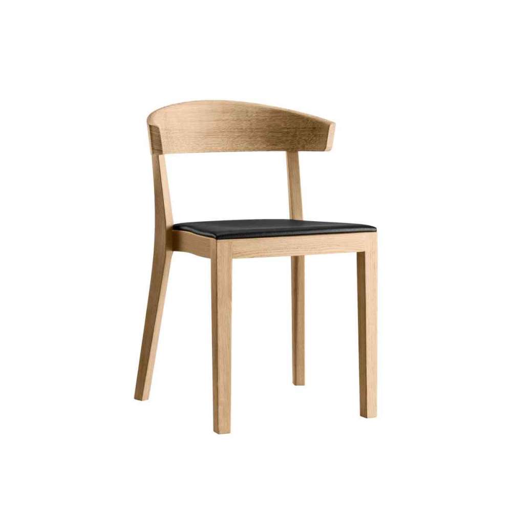 Tapicerowane siedzisko 3D, tylne i tylne nogi z litego drewna giętego, możliwość sztaplowania, opcjonalne łączenie rzędów